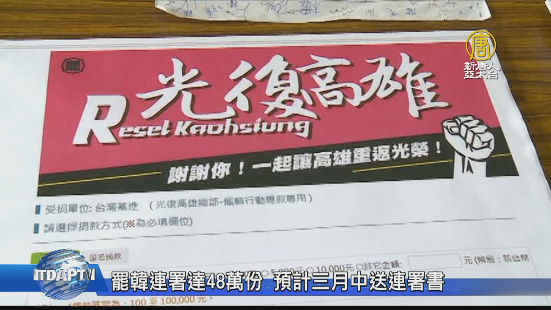 罷韓連署達48萬份 預計三月中送連署書