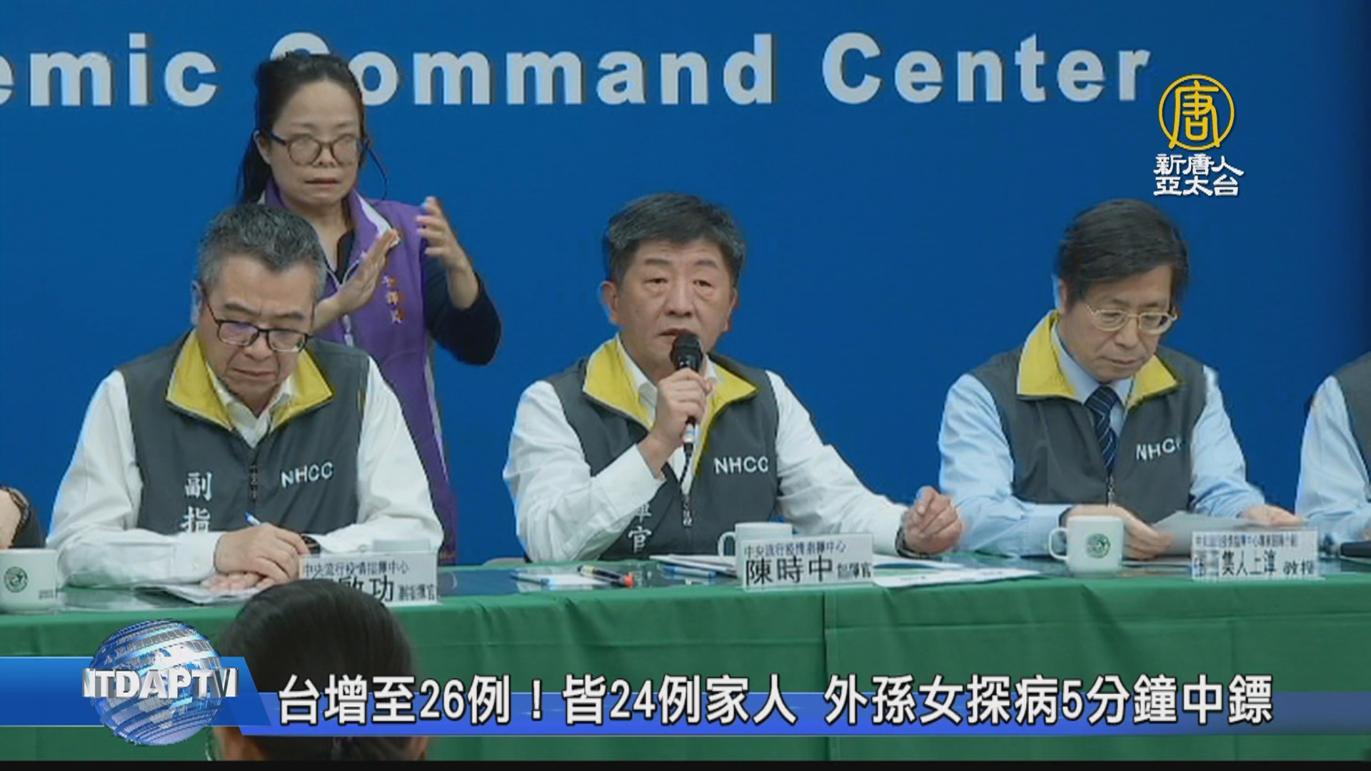 【新唐人亞太台 2020 年 02 月 21 日訊】來看到台灣疾管署今天(21日)公布,武漢(中共)肺炎又新增了2名最新確診,指揮中心繼續追第24例60歲婦人的接觸者,目前出現家庭群聚感染情況,新增的兩例確診,分別是她的外孫女及小女兒。