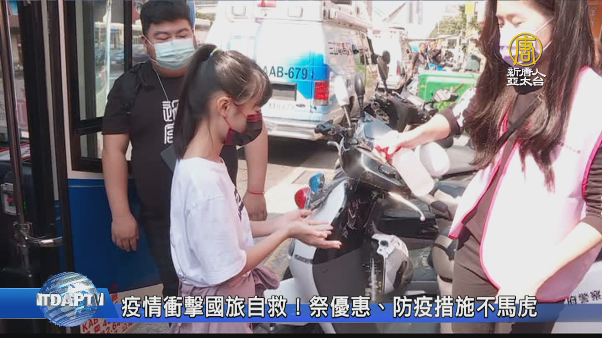 武漢(中共)肺炎疫情重創台灣觀光業,國旅出團人數大約掉了5成,虧損來到32億元。這回業者主打安心旅遊,乘客不只要繳交健康狀況聲明書、測量體溫,車內的椅背、手把消毒清潔,也要做到滴水不漏。