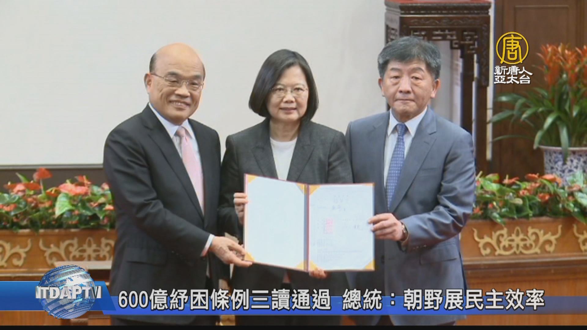 600億紓困條例三讀通過 總統:朝野展民主效率