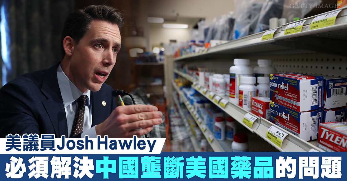 美國共和黨國會參議員喬什‧霍利(Josh Hawley)本週一致信給美國食品與藥品監督管理局(FDA),表示對美國藥品製造商對中國生產藥物的依賴程度,不可原諒。