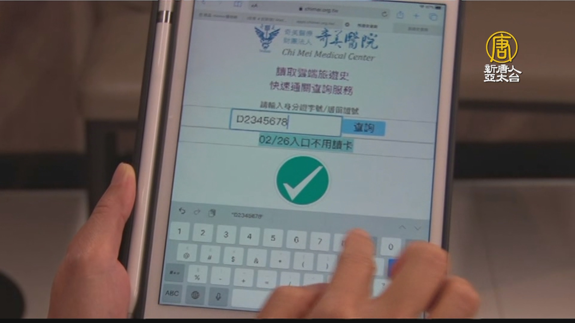 【新唐人亞太台 2020 年 02 月 27 日訊】防範武漢(中共)肺炎疫情,民眾需刷健保卡確認旅遊史才能進入醫院,為解決刷健保卡排隊等候,醫學中心設立醫療體系APP,並結合健保署雲端旅遊史資料,針對已預約掛號的病人,在簽署雲端資料下載同意書前提下,若無相關旅遊史,即可快速通關,減少接觸風險。