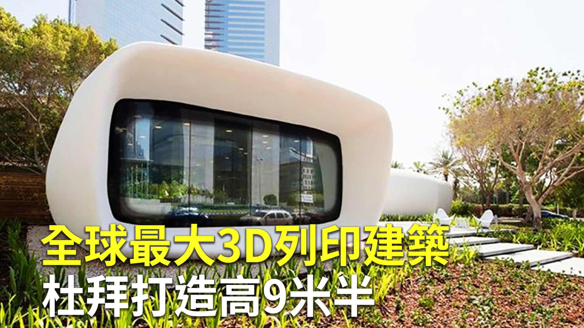 從開放的平地上,一座9.5米高的建築物被層層立體「列印」起來,這是獲得金氏世界紀錄認證的「全球最大3D列印建築」。占地640平方米,於2019年10月揭幕,這幢建築是杜拜政府計劃將這個酋長國打造為全球3D列印技術中心的起點。