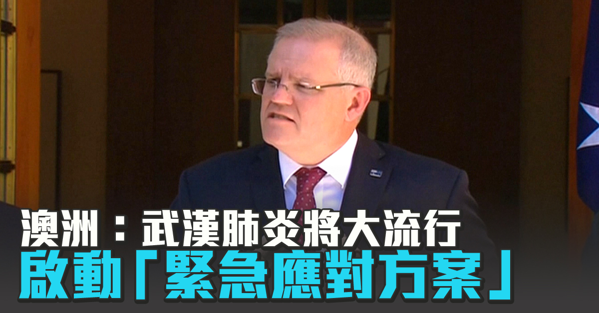 澳洲總理 莫里森(2020.2.27):「根據我們收到的專業醫療建議,種種跡象表明,世界將很快進入(中共)冠狀病毒的大流行階段。 因此,我們同意,今天啟動並實施(中共)冠狀病毒緊急應對方案。」「儘管世衛組織還沒宣布(中共)冠狀病毒的性質,及疫情邁向大流行的階段,但我們認為,全球大流行的危機就要來臨。因此,作為政府,我們必須採取必要行動,為大流行做好準備。」