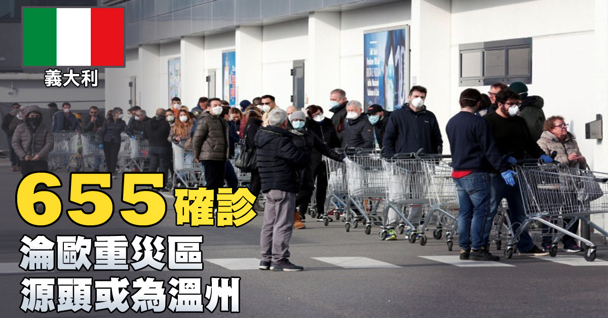 義大利淪歐洲重災區,來到655確診17死,有消息指出,源頭可能是普拉托的溫州商人。