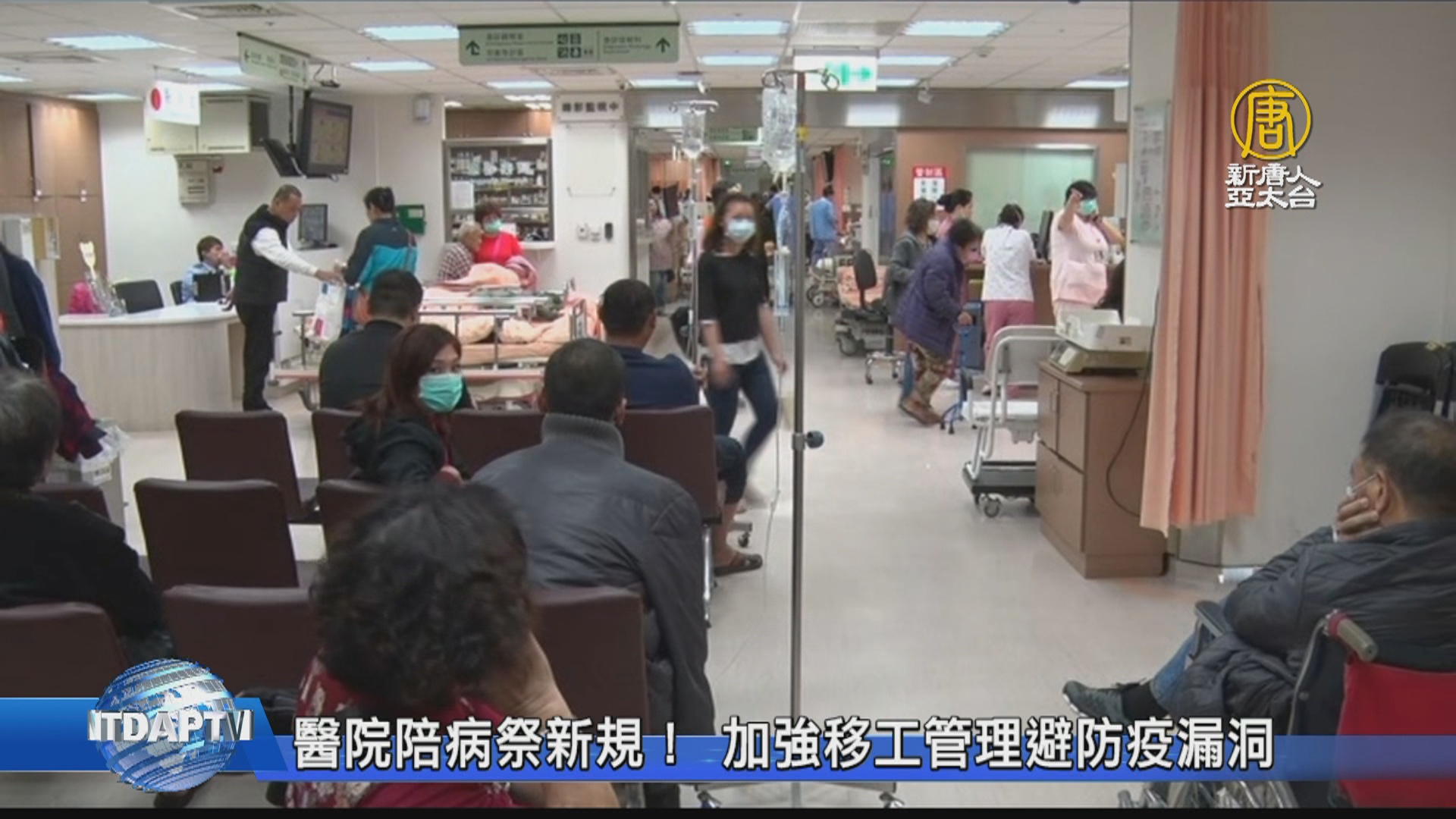 【新唐人亞太台 2020 年 02 月 28 日訊】歡迎回來,台灣第32例確診中共肺炎的非法女移工,讓民眾對於台灣防疫網是否足夠安全,產生疑慮。因為非法移工非常難以被追蹤管理,如果被住醫院的病人非法雇用,可能產生防疫漏洞。中央疫情指揮中心,針對醫院陪病和移工的相關管理,祭出了新規定。