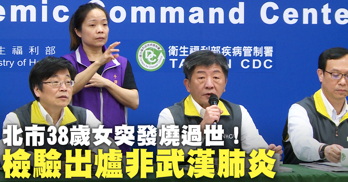 台北市38歲女子不明原因猝死家中,家屬說明女子猝死前發燒,懷疑是武漢肺炎惹禍,希望採檢,北檢請求北市衛生局採檢卻遭拒絕,中央流行疫情指揮中心指揮官陳時中表示,疾管署採檢後,證實該案病毒採檢為陰性。