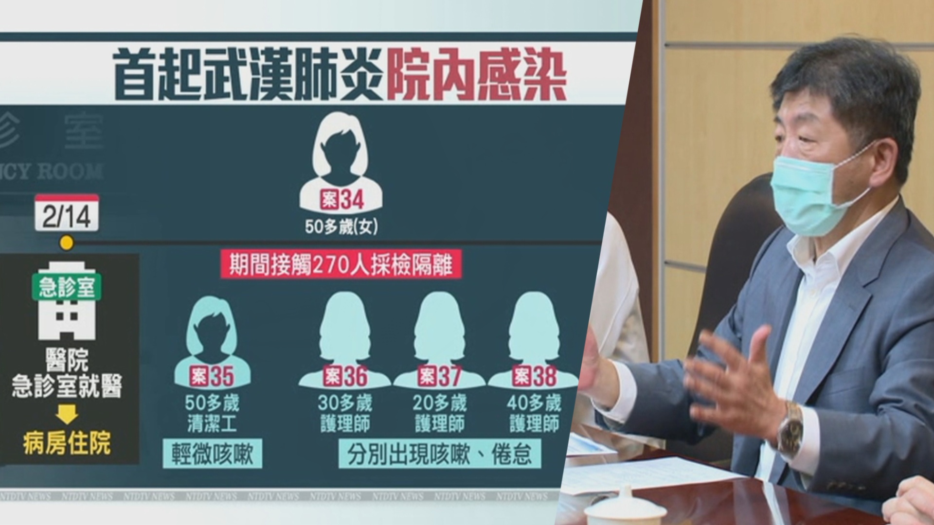第34例確診武漢肺炎的患者,與後面確診的5個個案,成為國內首例院內感染案例。到底是誰傳染給誰,指揮中心還在調查。不過因為目前疫調顯示這起院內感染,沒有向外擴散,衛福部長陳時中呼籲大家不要恐慌。