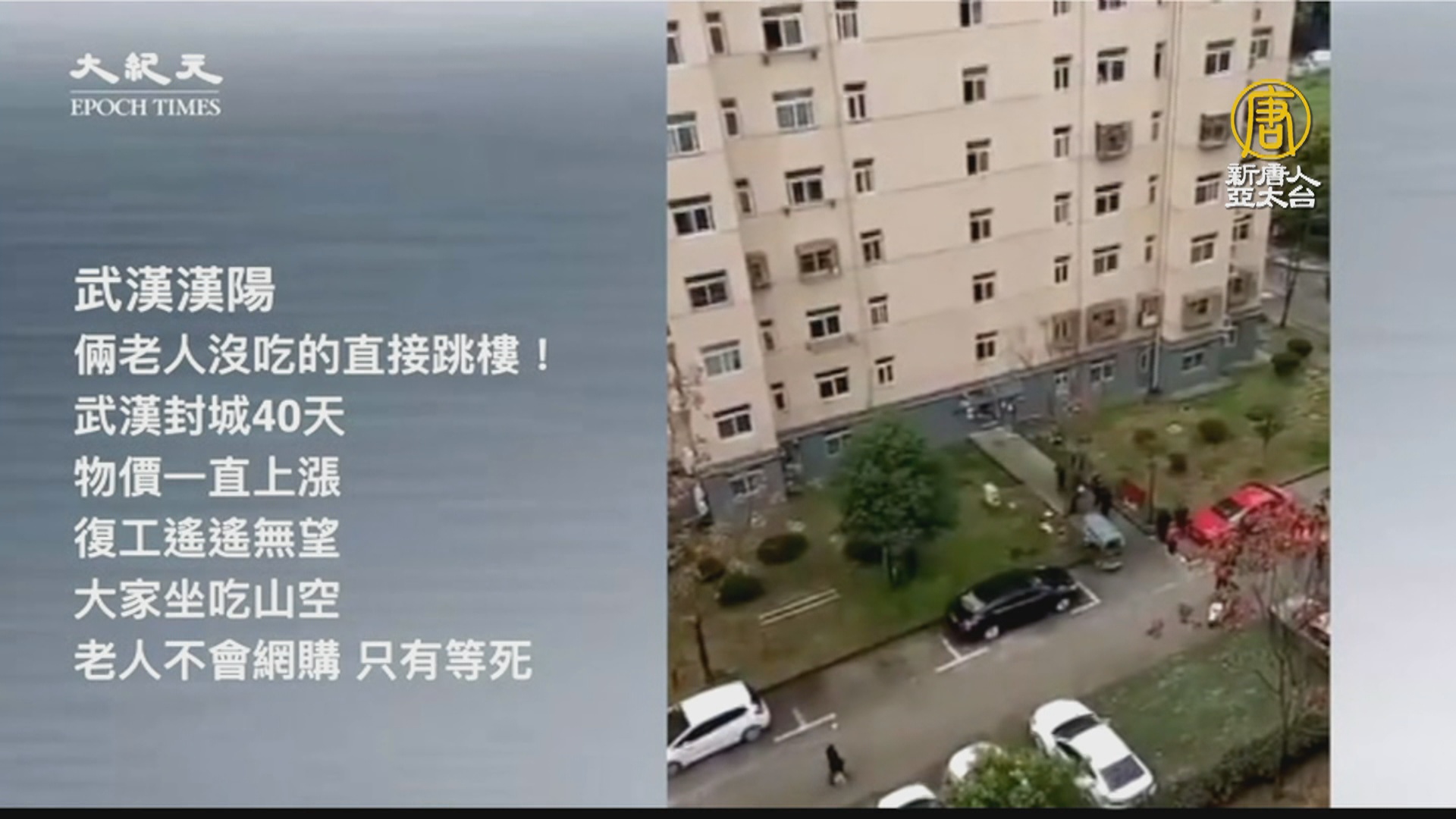 【新唐人亞太台 2020 年 03 月 05 日訊】武漢市封城從1月23日至今,已經超過40天,近期有兩起封城民眾跳樓輕生的影片曝光,引起輿論悲痛;然而中共黨媒還在頭版發表文章稱「日子過得和蜜一樣甜」;武漢居民表示,沒有收入、物價又高,外省捐贈的物資也無法獲得,每天都活在恐懼當中。