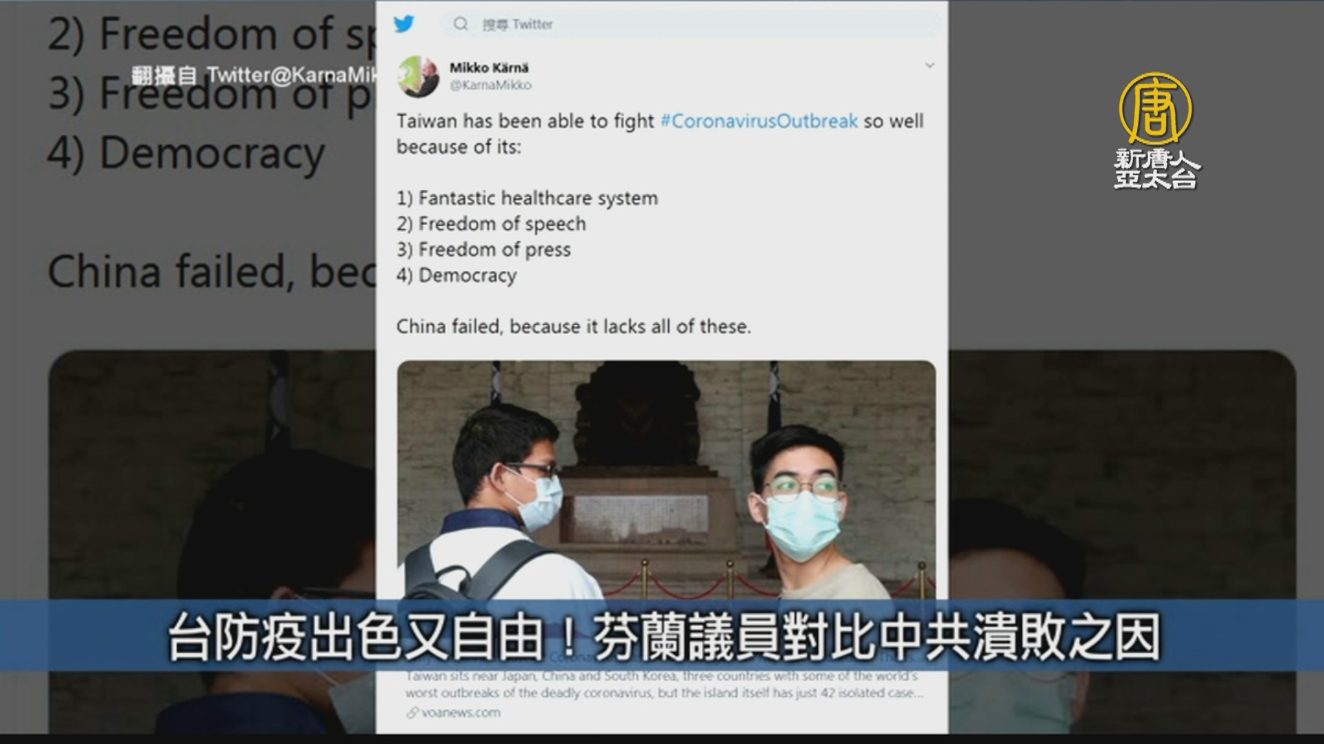 台防疫出色又自由!芬蘭議員對比中共潰敗之因