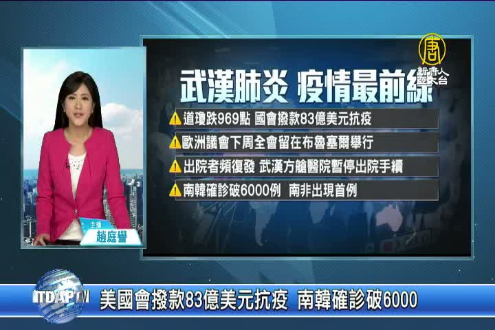 【新唐人亞太台 2020 年 03 月 06 日訊】早安新唐人,先帶您快速掌握,今日武漢(中共)肺炎疫情追蹤重點。美股道瓊狂瀉969點 美國會撥款83億美元抗疫。歐洲議會下周全會留在布魯塞爾舉行。出院者頻復發 武漢方艙醫院暫停出院手續。南韓確診破6000例 南非出現首例。