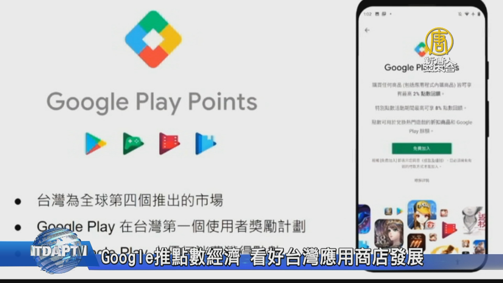 【新唐人亞太台 2020 年 03 月 10 日訊】Google Play今天宣布,首度在台灣推出使用者獎勵計畫,是繼日本、南韓、美國之後,在全球第四個推出的國家,看好台灣的行動網路市場,而有研調機構預測在2023年,台灣將在App Store的收入中排行全球第五,達到21億美元。
