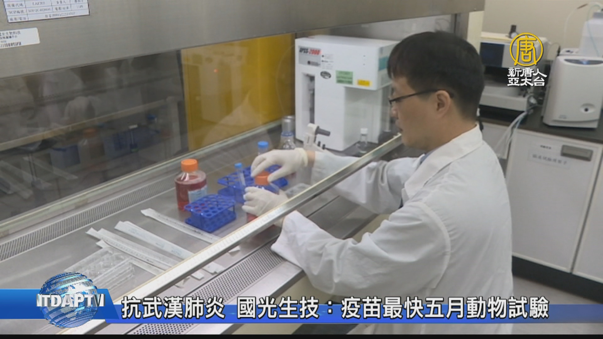 【新唐人亞太台 2020 年 03 月 11 日訊】追蹤中共肺炎疫苗的研發進度。台灣由國衛院帶頭合作研發,其中國光生技公司原本預估,候選疫苗,最快在6、7月能出爐,不過現在有希望提前到5月,並進入下一個動物實驗階段。