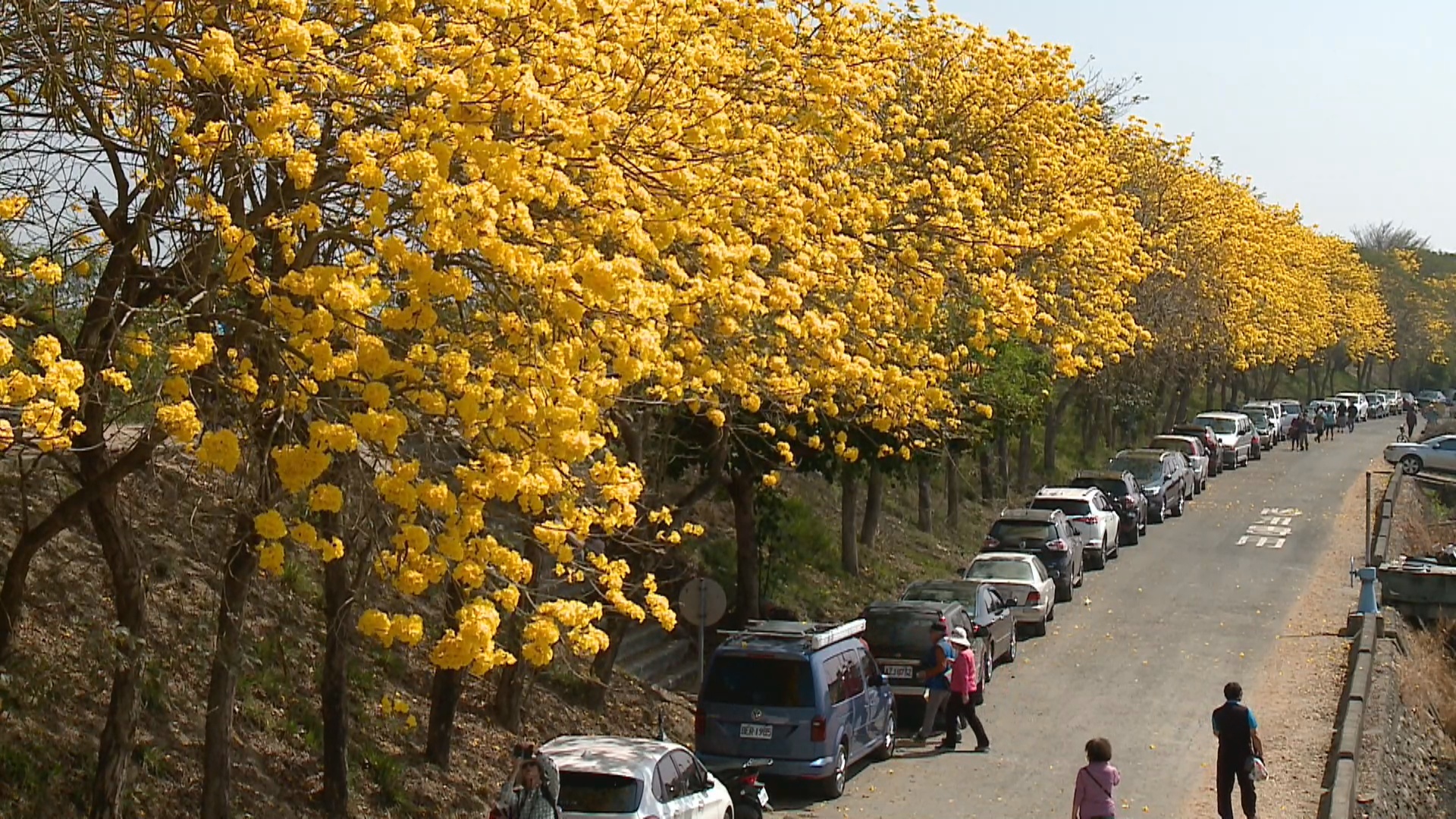 【新唐人亞太台 2020 年 03 月 13 日訊】台灣黃花風鈴木主要盛開處在中部, 嘉義太保朴子溪防汛道兩旁種滿了黃花風鈴木,綿延1公里,成為黃花風鈴木的賞花熱點。可說是全台最經典、最知名的黃金大道。