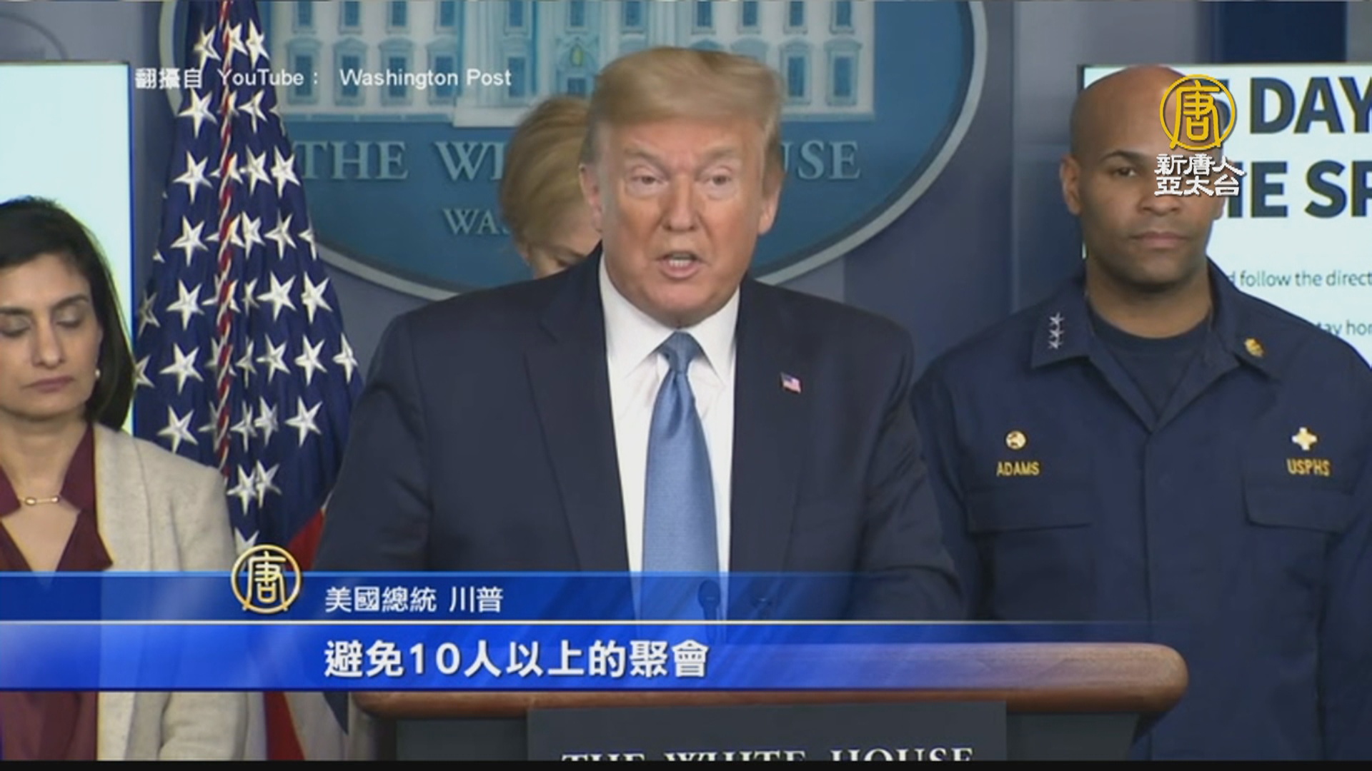 【新唐人亞太台 2020 年 03 月 17 日訊】美國總統川普今天公布中共肺炎因應指南,呼籲民眾不要出席10人以上聚會,對於疫情何時才能趨緩,他則認為可能要到7、8月。