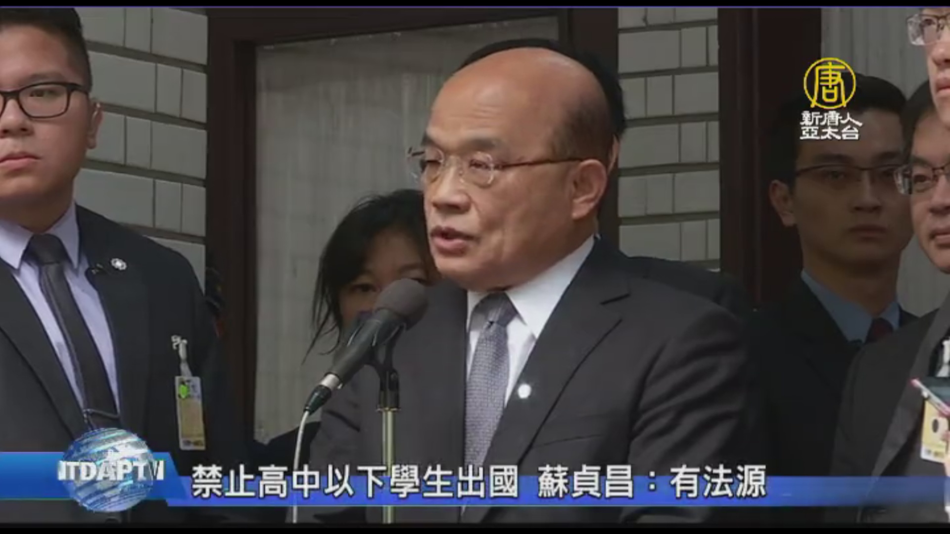 【新唐人亞太台 2020 年 03 月 17 日訊】為了防止校園發生中共肺炎群聚感染,疫情中心禁止高中以下學生在本學期出國,不過有輿論認為禁令沒有法源依據。行政院長蘇貞昌今天表示,依照傳染病防治法與特別條例,指揮官可因防疫考量做出相關處置。