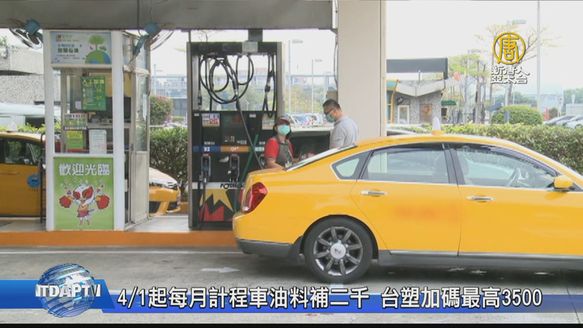 【新唐人亞太台 2020 年 03 月 18 日訊】受到疫情影響,台灣計程車載客率不斷下跌。4/1日起,政府補助每公升汽油費用4元,一個月最高可補助2000元,今天台塑再加碼,對台塑會員再折3元,最高一個月可補助3500元。