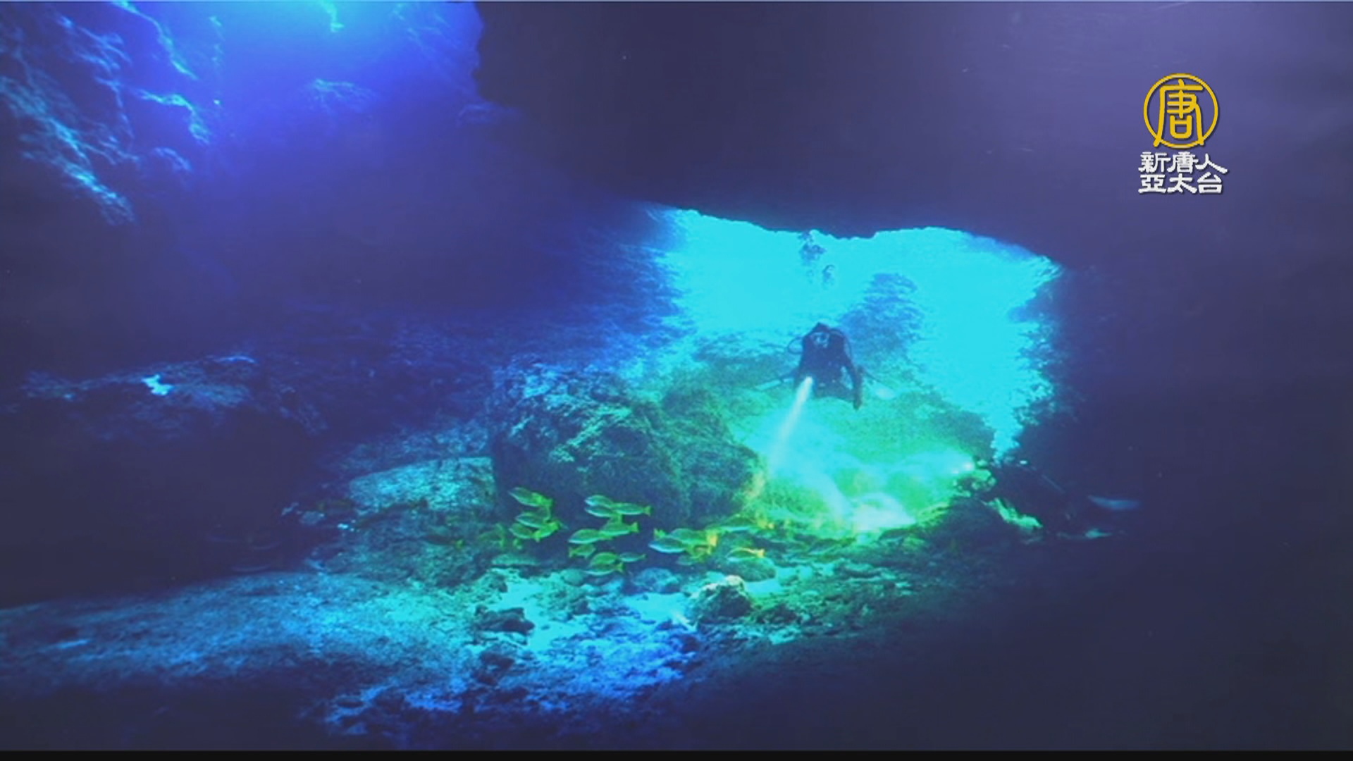 水下攝影師 李翔:「為什麼稱為藍洞呢?因為從洞頂上照下來的陽光,透過水透過海水它整個讓洞內全部散發成藍色的海藍色,非常非常漂亮。」