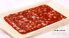 4.86%的水麥芽加熱回軟,加入寒天粉鍋中,煮融化。熄火,再加入草莓果泥175克攪勻。