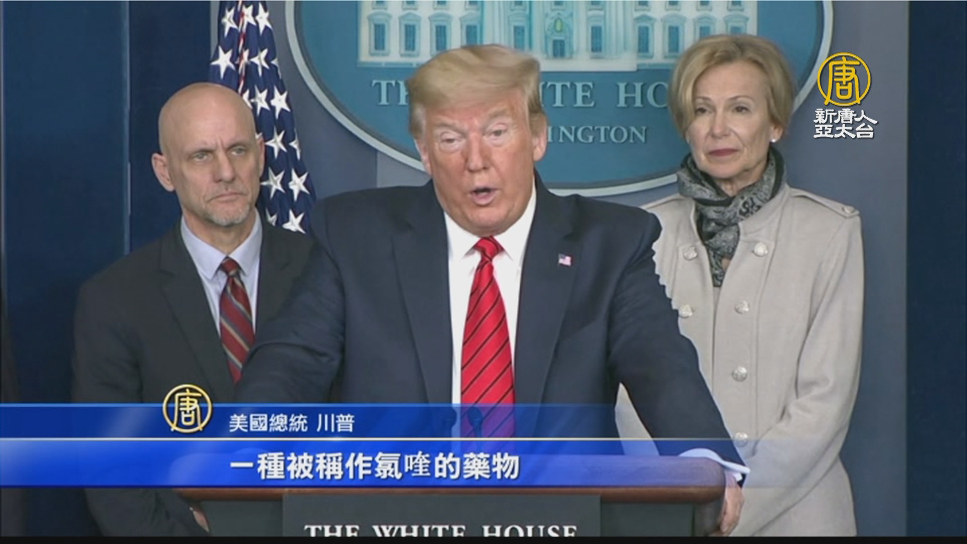 【新唐人亞太台 2020 年 03 月 20 日訊】美國總統川普,週四 要求美國食品及藥物管理局,儘快在現有藥物中,找到適合治療中共肺炎的有效方法。川普說,一種抗瘧疾的藥,氯喹chloroquine,或許可以扭轉疫情。