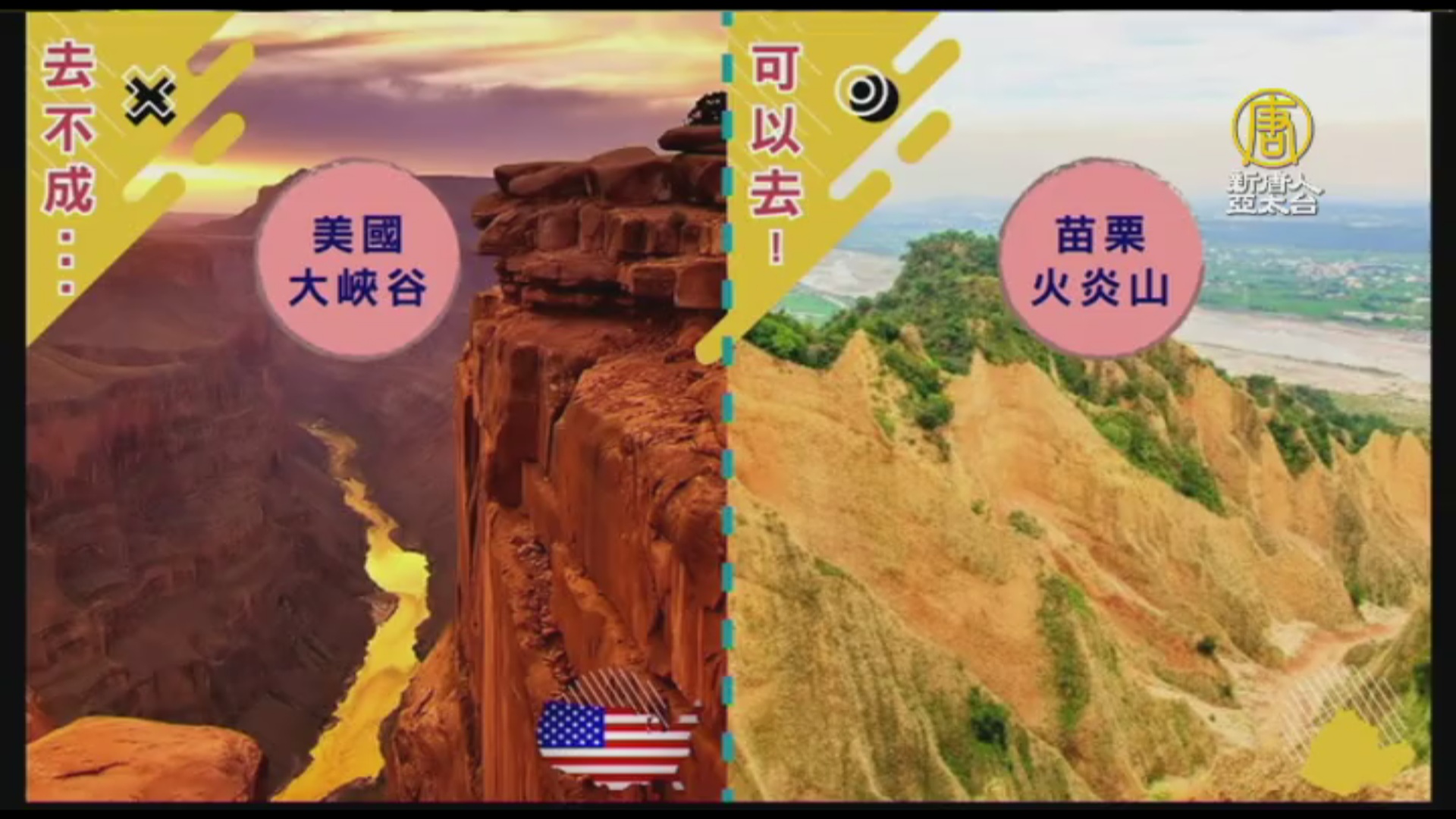 【新唐人亞太台 2020 年 03 月 20 日訊】歡迎收看今天的好樣Formosa。中共肺炎疫情,衝擊台灣的國內外觀光,為了行銷國旅,有飯店、渡假村在臉書,貼出和國外雷同的景點照片,例如,去不了美國大峽谷,其實苗栗火炎山也很像;無法體驗西班牙奎爾公園,台灣渡假村也有西班牙海岸景觀。防疫關鍵時刻,呼籲大家忍著不要出國旅遊,其實回首看台灣,有不少相似的美景。