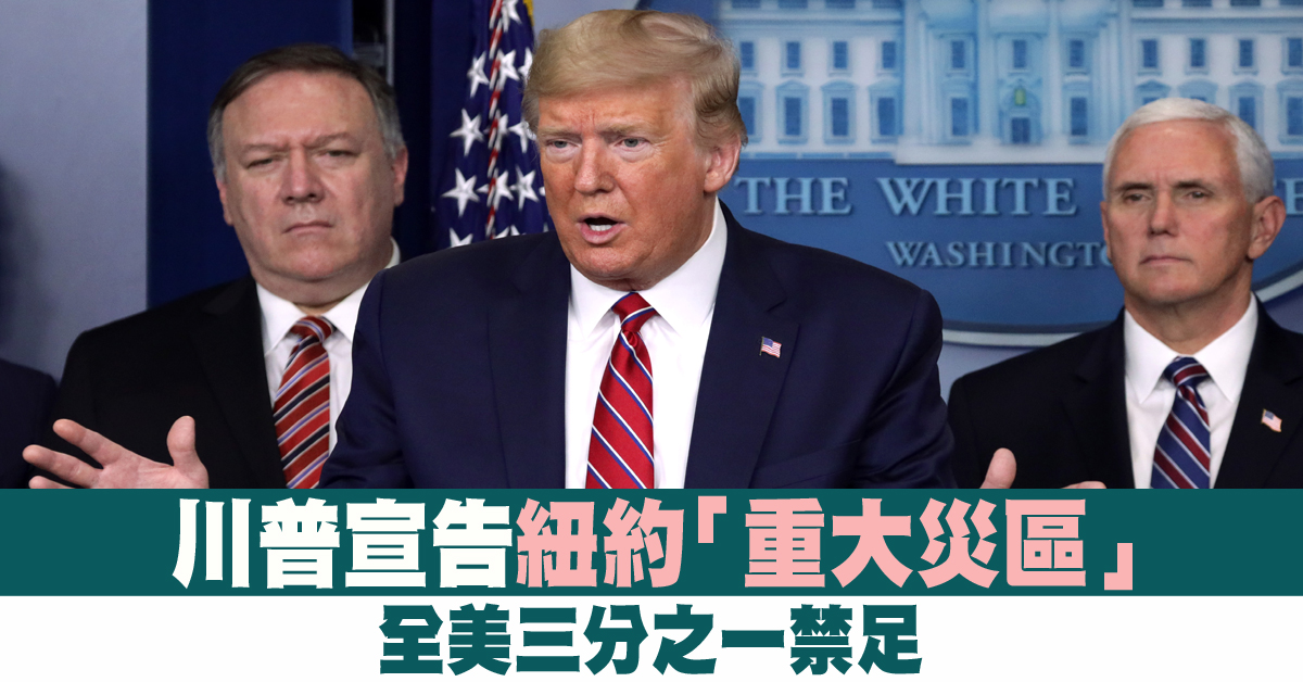 川普宣告紐約「重大災區」 全美三分之一禁足
