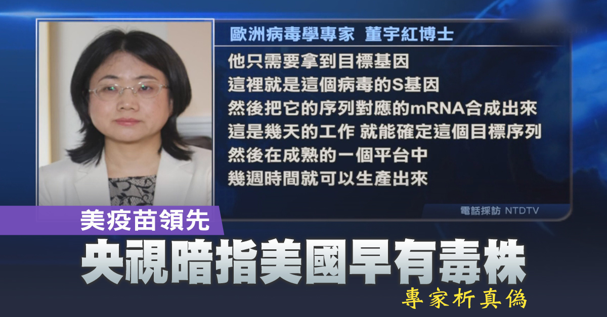 美疫苗領先 央視暗指美國早有毒株 專家析真偽