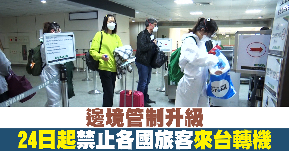 台邊境管制升級 24日起禁止各國旅客來台轉機