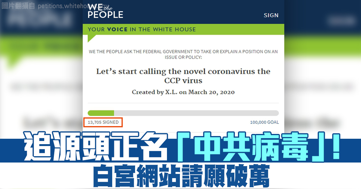 追源頭正名「中共病毒」 !白宮網站請願破萬