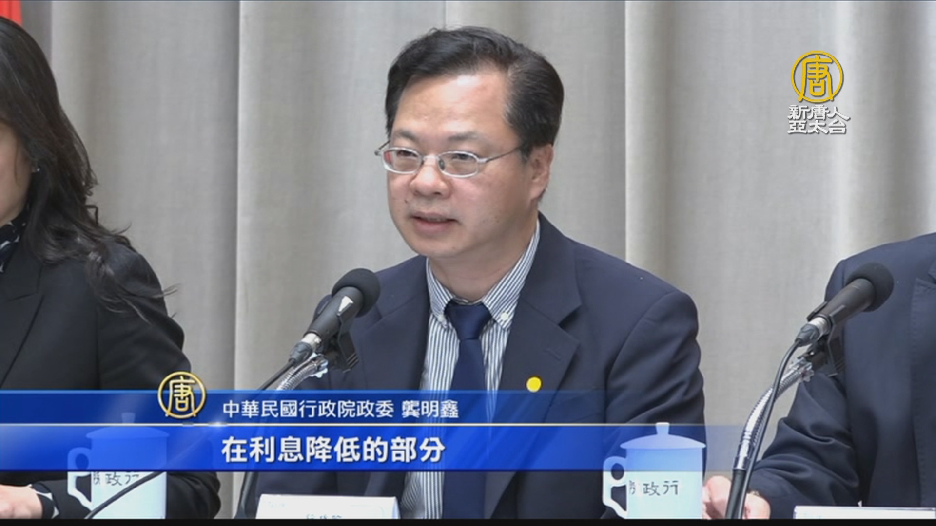 中華民國行政院政委 龔明鑫:「第一個大概就是說,那需要的部分,基本上他(民眾)可以申請延緩繳費,那緩繳的時間最長是一年,或分期繳納,那最長是3年。那第二個部分就是有關於這個,貸款的部分,那對於一些,如果個人因為貸款上,在有一些困難的情況之下,基本上他本金跟利息,都可以申請,延緩繳納6個月,那另外一個部分就是說,在利息降低的部分,那上個禮拜事實上中央銀行,也宣布了降息1碼,也就是0.25個百分點,那基本上我們已經跟所有的銀行,做過溝通,所有的放款利率基本上,都要充分反應這個,降息0.25%,這樣的1碼的,這樣的一個趨勢。那所有的公股行庫,他的貸款利息,基本上再減碼,除了這個減1碼之外,有關於這個民眾的自用住宅,如果是100萬以內的這些,1000萬抱歉,1000萬以內的這些,房屋貸款的利率,再降1碼,所以就總共是2碼,也就是0.5個百分點。」