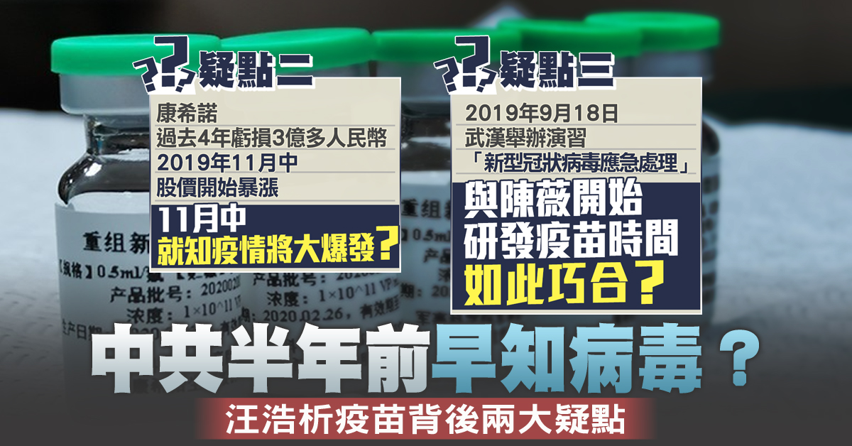 中共半年前早知病毒?汪浩析疫苗背後兩大疑點