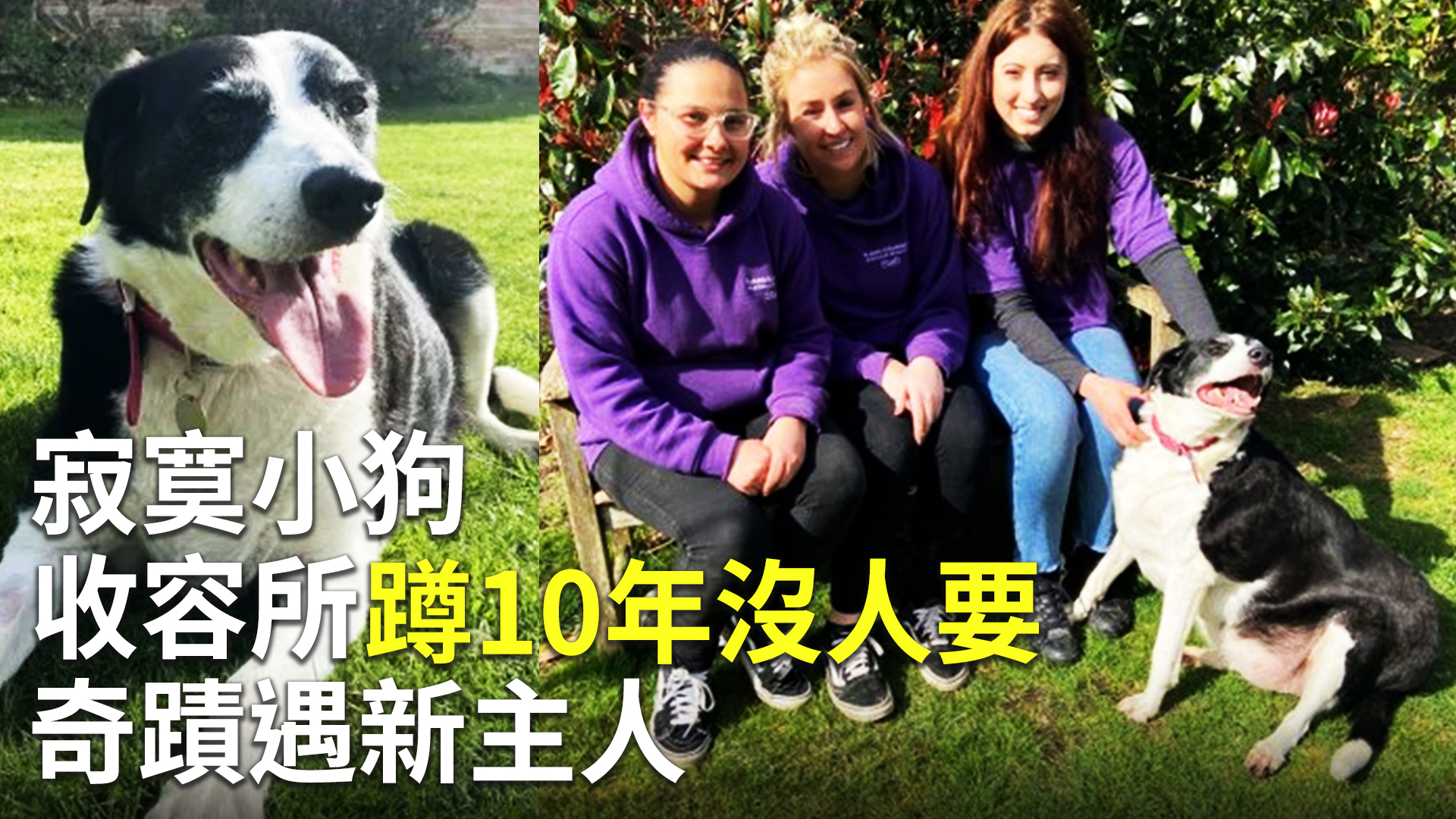 【新唐人亞太台 2020 年 03 月 27 日訊】一隻被稱為英國最寂寞的狗狗的邊境牧羊犬,在收容所在收容所度過了10年之後,終於遇到新主人,願收容所工作人員都很替牠高興。