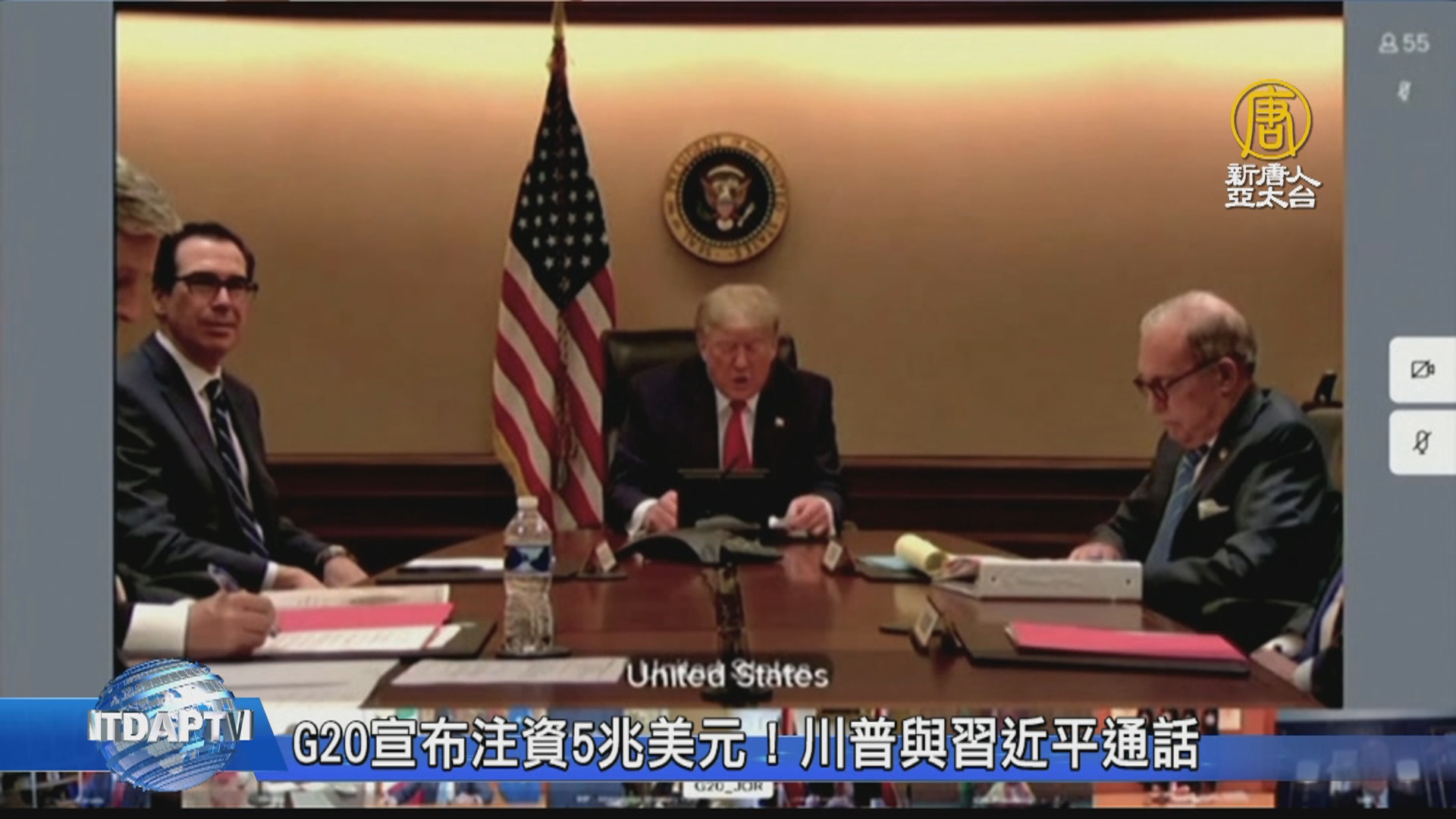 【新唐人亞太台 2020 年 03 月 27 日訊】G20 ,20國峰會週四 (26 日) 召開特別臨時峰會,世界 20 大國領袖在視訊會議上決議,將向全球經濟注資5 兆美元,分享更多的醫療數據和貿易措施,來因應疫情帶來的衝擊。另外,26號,美國的中共肺炎確診病例數,超過了中共對外宣稱的確診病例數。美國總統川普記者會上被問到這一問題時,他表示,那是因為美國做了大量的檢測,而且中共所提供的數字,也不可信。