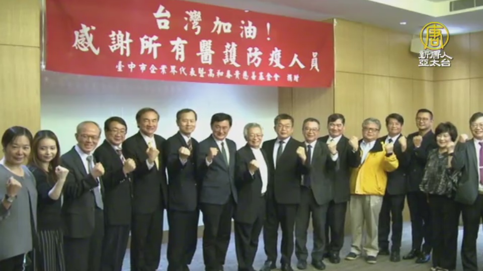 【新唐人亞太台 2020 年 03 月 27 日訊】中共肺炎疫情持續嚴峻,中部企業界為感謝第一線防疫醫護人員,集資近800萬元捐贈給中部10家醫療院所醫療人員,在立法院副院長蔡其昌和立委黃國書的見證下,(27日)完成捐贈儀式。