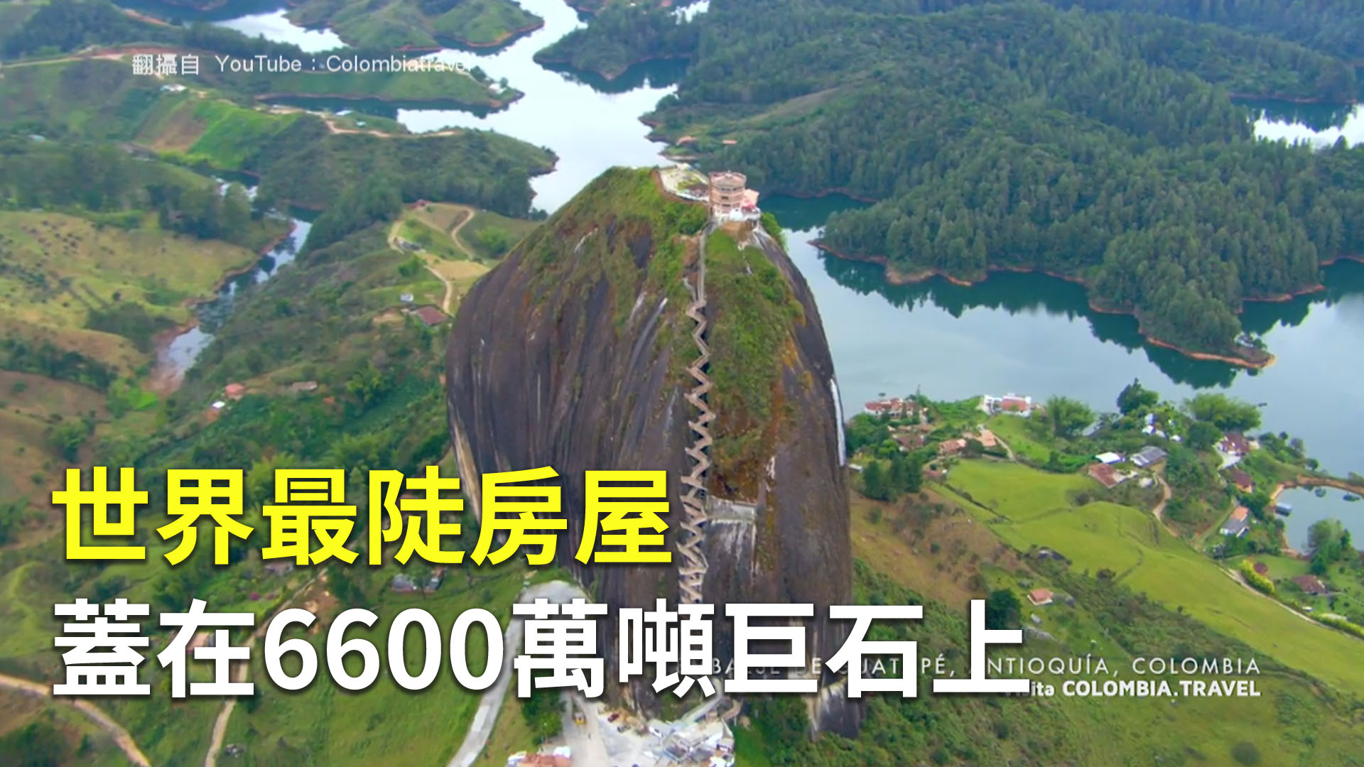 【新唐人亞太台 2020 年 03 月 28 日訊】位於哥倫比亞 安蒂奧基亞省 有一座名叫瓜塔佩(Guatape)的巨石,這座望之讓人興嘆的巨石頂端有座房屋,被網友稱為「世界上最陡的房屋」。