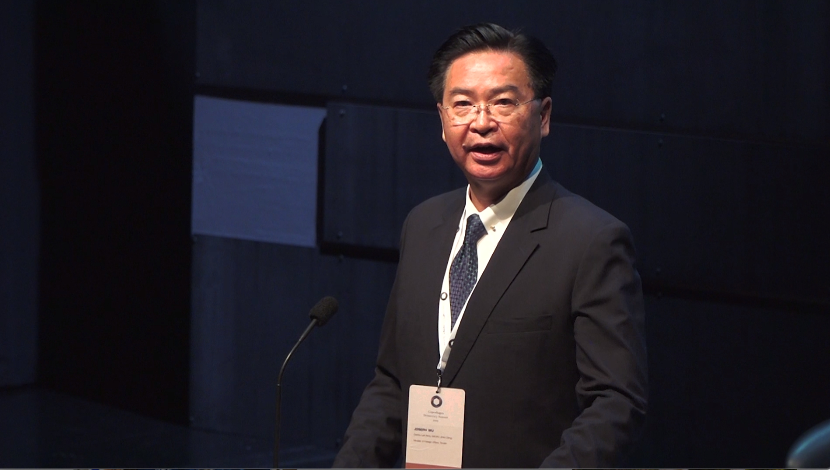 中華民國外長吳釗燮出席哥本哈根民主峰會演講,他說「自由人權民主在我DNA」。(截圖/哥本哈根峰會演講片段)