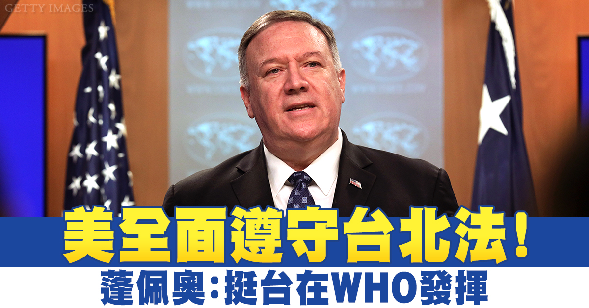美全面遵守台北法!蓬佩奧:挺台在WHO發揮
