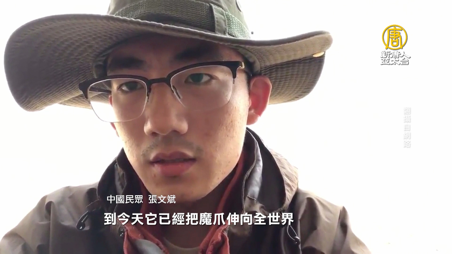 中國民眾張文斌:「中國共產黨從土地改革、文化大革命、三年大饑荒到計劃生育,還有六四屠殺,對法輪功的迫害,對西藏、香港和新疆人民的迫害,到今天它已經把魔爪伸向全世界,而大家還都視而不見,甚至還在歌功頌德,我實在無法忍受。」