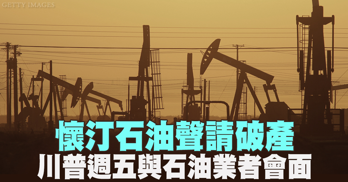【新唐人亞太台 2020 年 04 月 02 日訊】歡迎回來,中共肺炎疫情,加上俄羅斯與沙烏地阿拉伯的石油價格戰的影響下,現在出現了第一個破產的美國大型頁岩油廠商。美國頁岩油廠商懷汀石油公司在昨天聲請破產保護。美國總統川普將在星期五與美國產油業者會面,商討對策。