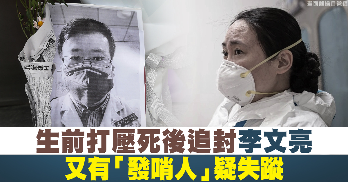 生前打壓死後追封李文亮 又有「發哨人」疑失蹤