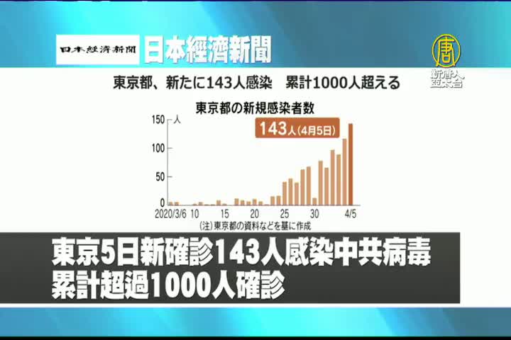 【新唐人亞太台 2020 年 04 月 06 日訊】來看到日本經濟新聞報導:東京5日新確診143人感染中共病毒,累計超過1000人確診。
