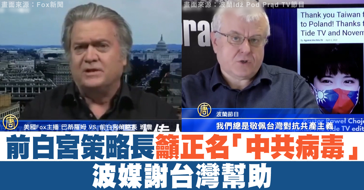 【新唐人亞太台 2020 年 04 月 07 日訊】前白宮首席策略長班農,5日接受美國福斯新聞專訪,重申是中共掩蓋疫情與病毒源頭,中國人是受害者,應該正名為「中共病毒」。波蘭一家電視台節目,也稱呼中共病毒,感謝台灣幫助波蘭對抗。目前在白宮請願網站,就有一項正名的連署案。
