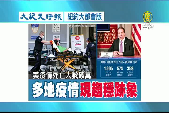 【新唐人亞太台 2020 年 04 月 08 日訊】接著看到大紀元時報紐約大都會版報導:美國疫情死亡人數破萬,多地疫情出現趨穩跡象。