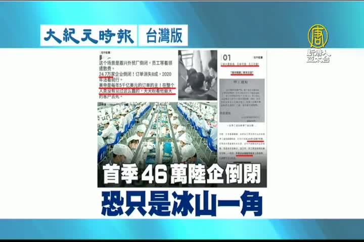 【新唐人亞太台 2020 年 04 月 08 日訊】繼續看到大紀元時報台灣版報導:首季46萬中國企業倒閉,恐怕只是冰山一角。