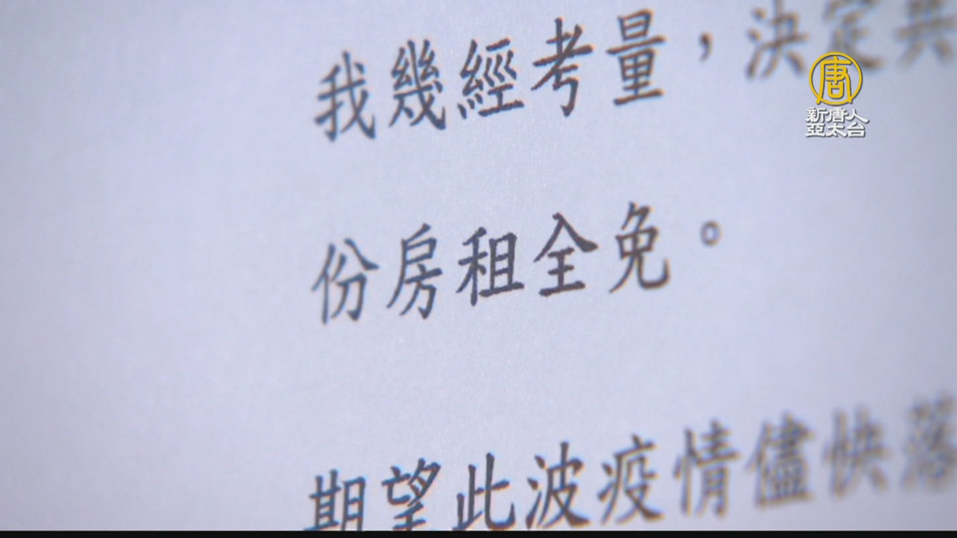 房東 陳大鈞:「我還夠用,所以我也不要再收那麼多,大家拿一點力量,來幫助虧(損)的人,這很重要。」