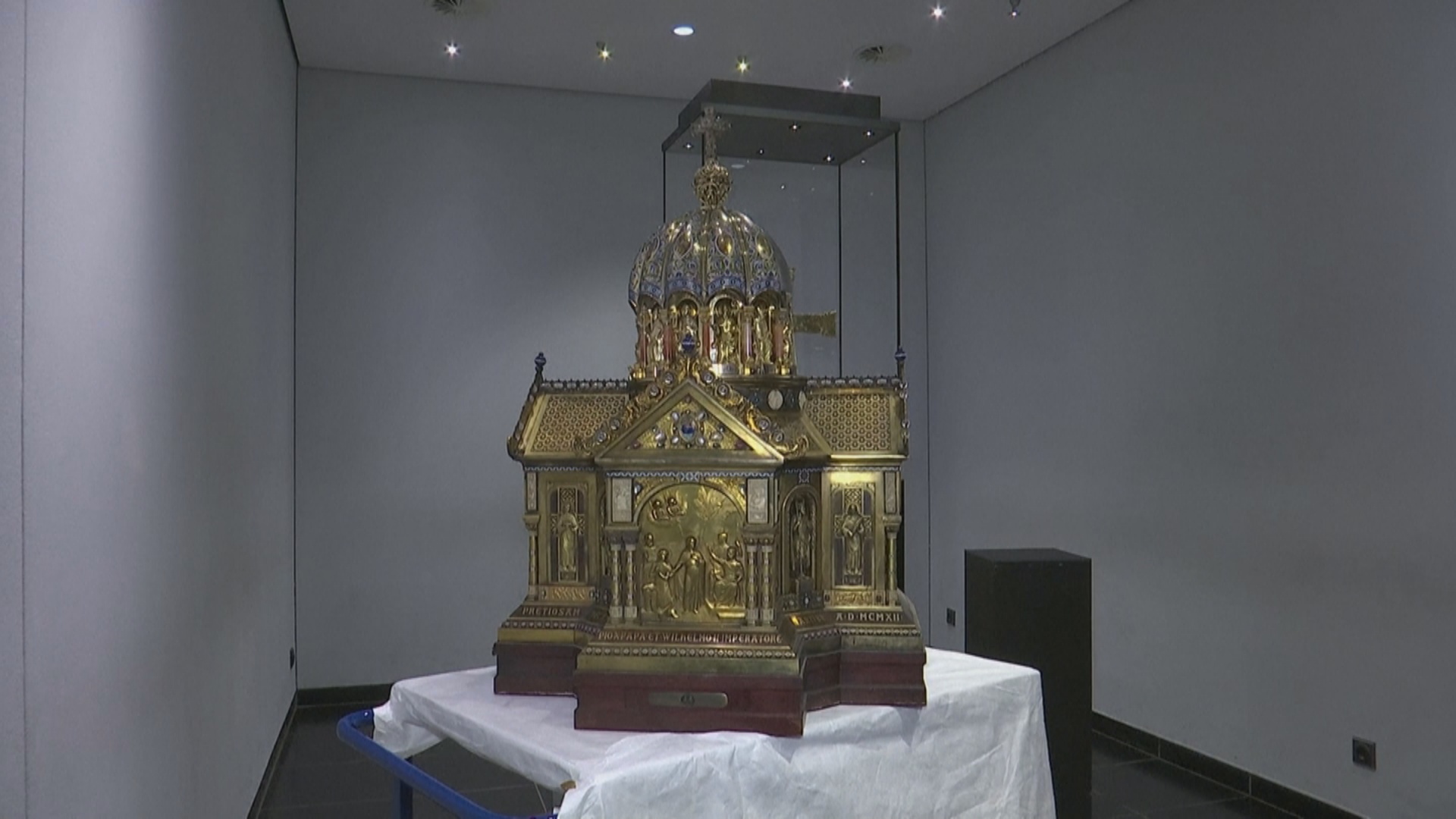 亞琛大教堂是歐洲最古老的大教堂之一,於西元9世紀由查理曼大帝(Emperor Charlemagne)建造。近日,大教堂計畫將收藏聖可樂娜遺骨的神龕從珍寶室請出來展示,但因為疫情影響,政府限制公眾活動而延後。