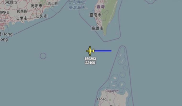 中共遼寧號今天凌晨經過台灣東部外海,美國電偵機隨即再度現身巴士海峽。(圖/擷取自飛機守望Twitter)