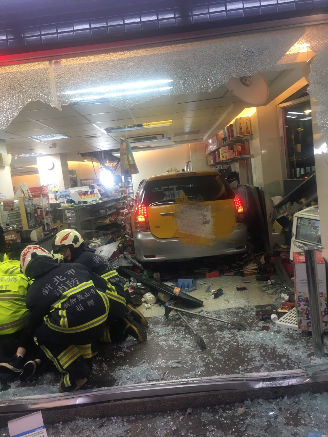 新北消防局表示,晚間六點半左右,在中和中山路三段,有一輛計程車衝撞進全家便利商店,造成店面玻璃整片碎裂,店內一名46歲女性遭撞倒,意識清楚、無明顯外傷,但肢體疼痛,已經送往雙和醫院。車禍原因由警方調查中。