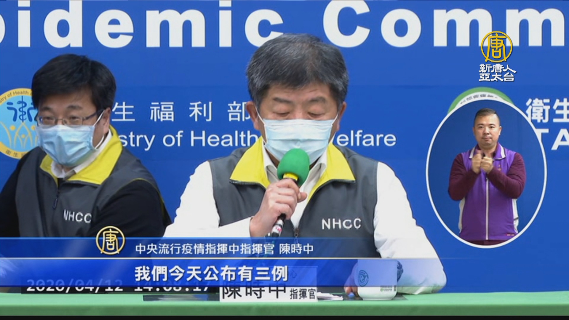 中央流行疫情指揮中指揮官 陳時中:「我們今天公布有三例,有三例確診個案,兩例是境外移入,一例本土。」