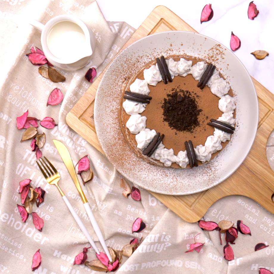 2. 分兩次加入牛奶,拌勻。加入碎oreo、融化奶油後,拌勻。(冷藏靜置1小時)